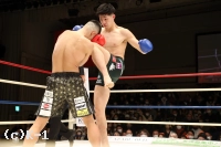 立ち上がった稲垣は三日月蹴りを当て、東本が右・左のフックを強打で振るってきても当てさせず、逆にカーフキックでとらえる。稲垣はこのカーフを効かせ、東本は転倒する場面も見られる。稲垣は右フックを当て、その後のカーフキックでダウンを取り返す。