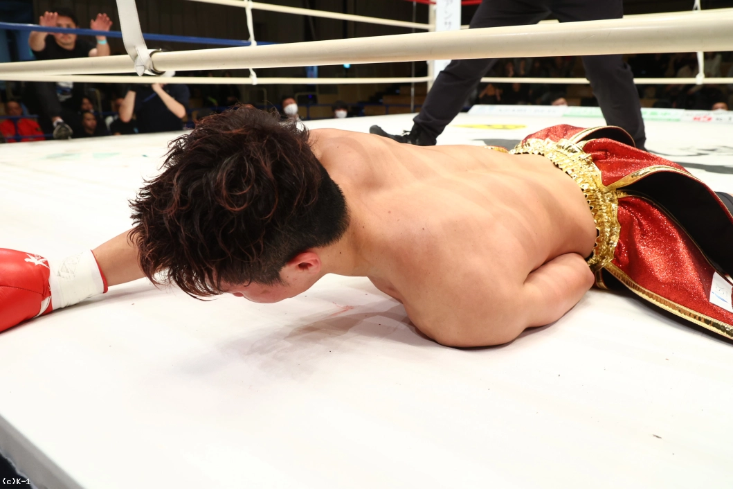 ダメージがある様子の河北に大利は右・左とフックを叩き込み、再度のダウンを与えフィニッシュした。