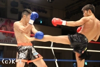 3R、MOMOTAROの蹴りが稲垣の下腹部に入ってしまい一時インターバルが取られる。再開後、MOMOTAROはバックブローなどかく乱せんとするが、稲垣は的確にブロックし逆に左フックをヒット。両者近距離の攻防でMOMOTAROは飛びヒザ、ハイキックと放つが稲垣はよく見えており当てさせない。判定は30−28、30−28、30−28の3−0で稲垣。ベテラン巧者MOMOTAROを下した。