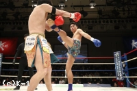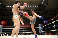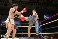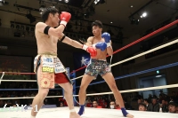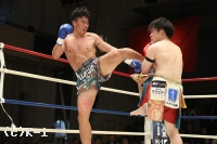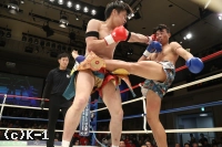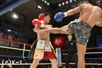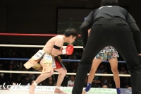 2R、前に出てくる町田に対してヒザ蹴り、左のミドルキック。さらに左のハイキックを放つ。デンサヤームは前蹴りをさばいて左のミドルキック。さらにデンサヤームはミドルキックから左右のパンチの連打だ。町田もパンチで応戦するが、デンサヤームは左のストレート、左のミドルキックだ。町田も飛び込むような右フック。それに対して、デンサヤームは右のストレートだ。