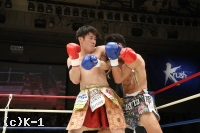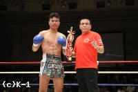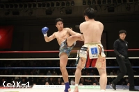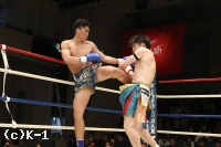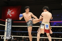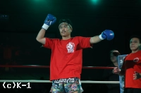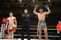 3R、相変わらず前に出てくる町田に対して、デンサヤームは左のミドルキック。立て続けに左ミドルキックを打ってから、パンチを合わせるデンサヤーム。それでも下がらない町田もパンチを打って応戦だ。だが、デンサヤームは左のヒザ蹴り。さらにパンチを連打する。ラウンド終盤にも左のミドルキックを連打。町田に反撃を許さず、試合終了となった。判定は30-28、30-28、30-29の3-0でデンサヤームが手堅く勝利。嬉しいK-1 GROUP初勝利となった。