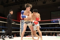 2R、愛瑠斗はパンチ、蹴り、さらにバックブローを繰り出して前に出る。齊藤は左のストレートからローキックのコンビネーション。愛瑠斗は右のカーフキックを放つが、齊藤はパンチで応戦していく。残り1分のところで愛瑠斗はコーナーに追い込んでパンチの連打。さらに愛瑠斗は右のカーフキックからミドルキックだ。齊藤も終了間際にバックブローを放つが、愛瑠斗には当たらない。