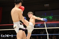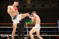 3R、前に出る愛瑠斗。齊藤もパンチを連打して応戦。ローキックを炸裂させていく。だが、下がらない愛瑠斗は前蹴りで前に出るが、これが齊藤に対してローブローとなり試合中断だ。再開後、前に出ていく愛瑠斗に対して、齊藤はカウンターの右ストレート。齊藤はローキックを連続で繰り出すが、愛瑠斗も下がらない。齊藤は下がりながらヒザ蹴り、左のミドルで応戦だ。しかし、コーナーに詰めた愛瑠斗はパンチを連打。齊藤は回り込んで、右のヒザ蹴りを放ってやり返す。最後は愛瑠斗が右のフックを当てたところで試合終了。判定は30-28、30-28、30-28の3-0で齊藤が勝利をもぎ取った。