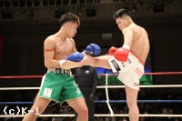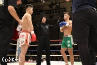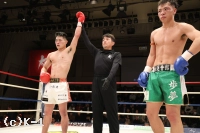 3R、歩夢の左フックが当たるが、昇也は下がらない。警告を与えられた後にもパンチを当てる歩夢だが、昇也は前に出てパンチで打ち返していく。フック、ヒザ蹴りで攻める歩夢。それに対して昇也ボディブロー。ならばと歩夢もパンチを振るって攻め手を緩めない。右のフック、ヒザを出したが、昇也の右フックでダウンを喫してしまう。だが、歩夢が立ち上がったところで試合終了。判定は28-27、28-27、28-27で3-0となり、昇也が判定勝利となった。