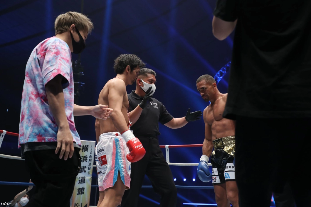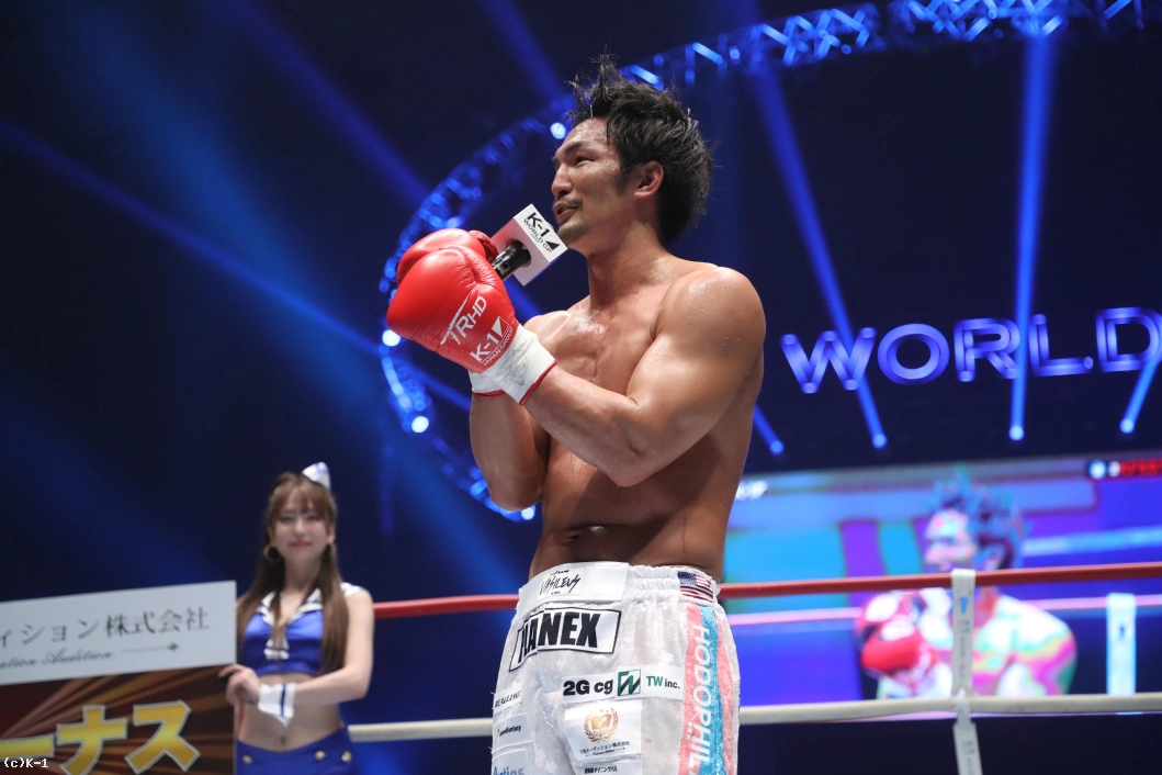 世界チャンピオンになるためにK-1に戻ってきました。結構いい年だしダメージもあるので、早めにちゃんピンを決めてほしいなと思って、今日神保選手負けちゃいましたけど、ミドル級を引っ張っていくので。言葉は悪いかもしれないけど、僕はこのリングに死ぬことはもちろん、相手を殺すつもりで上がってます。覚悟を決めて上がってるので、中村プロデューサー、K-1のみなさん、そろそろトーナメントお願いします」