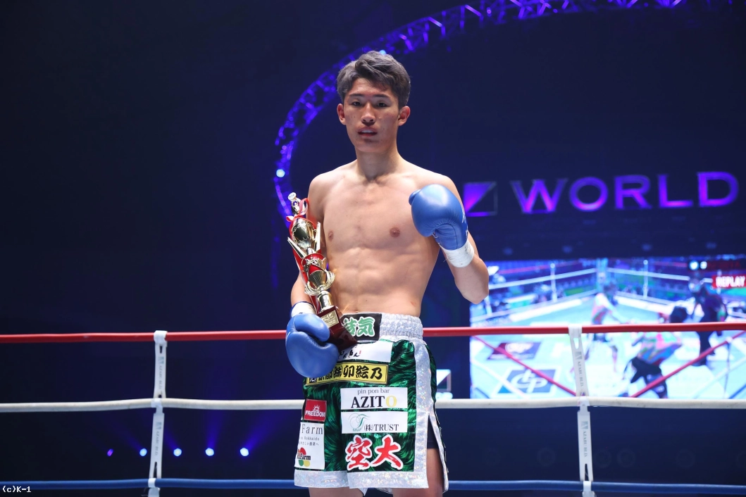 3R、左右のフックを踏み込んで放つ竜義に対し、上野は距離をあけ、三日月蹴り・ハイキックと放つ。竜義はサウスポーに変わると左フックをヒット。パンチから蹴りに連係する上野だが、近距離パンチの打ち合いでは竜義のヒットが目立つ。上野はしかしパンチで前に出てヒザを突き上げ終える。判定は30-29、30-29、29-28の3-0で上野。苦しんだがデビュー戦を勝利した。