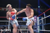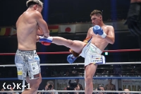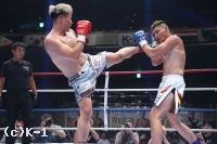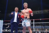2R、谷川はプレッシャーを発してロープ際に追い込みカーフキック。そしてAKIRAのボディにヒザを打ち込む。左フックをもらった谷川だが、すぐに自身も左フックを返しハイキック。3Rも谷川はまずロー、カーフキックで行く。AKIRAはクリンチを振り払い右ストレートを決めるが、谷川はダメージを見せない。AKIRAはホールディングが多くなりフェリーから注意を受ける。判定は30-27、30-27、30-27の3-0で谷川。1Rにパンチでダウンを奪って勝利した。