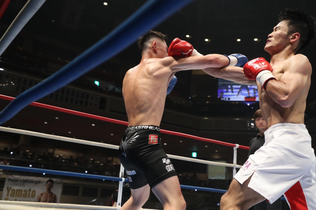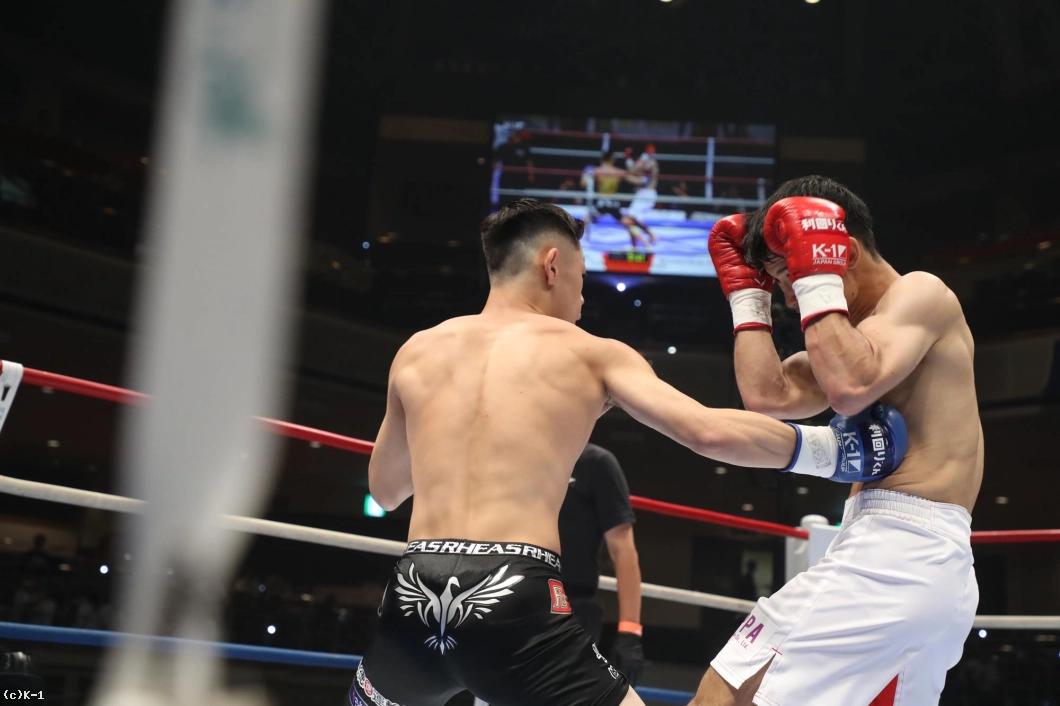 3R、松本はロー、ハイキックと蹴り分ける。山本は距離を詰めてヒザを効かせるが、松本は持ち直してローでダメージを与える。山本が意を決して前に来ても松本はボディブロー、フックと強打して終える。