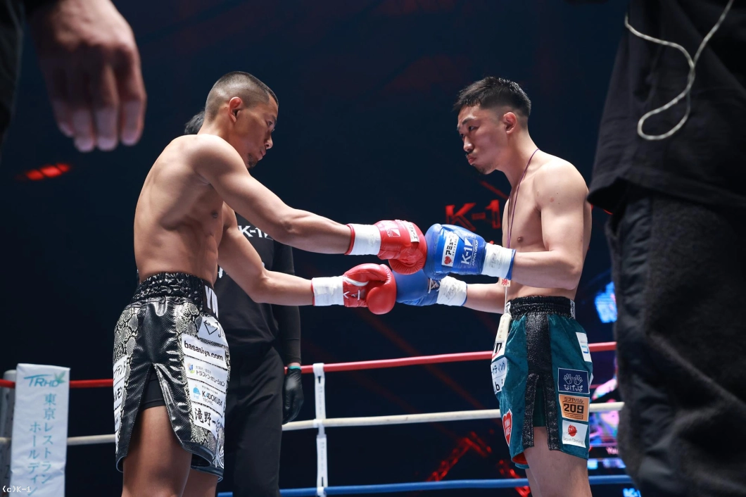 3R、江川は前蹴り、カーフキック。常陸は左フックを返す。江川は左右のボディ打ち。常陸は足を使いながらかわし、右で飛び込んで左を放つ。飛びヒザ蹴りの常陸。江川もパンチを返すが、守勢に回る。江川の右が入り、常陸がダウン。立ち上がった常陸は、反撃も試合終了のゴング。判定は3者ともに28-28で延長ラウンドへ突入した。