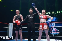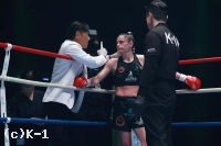 3R、プリフティの顔が腫れているためにドクターチェックも試合再開。プリフティは右から左のパンチ。SAHOは左フックのカウンターを合わせる。プリフティの右をガードするSAHOは構えをチェンジしながら、相手を翻弄する。プリフティは左ミドルキック、右ローキックで倒しに来る。SAHOは打ち合いに応じ、最後まで手を止めなかった。判定となり、3-0でSAHOが勝利。SAHOが、悲願のK-1 WORLD GP女子フライ級のベルトを腰に巻くこととなった。