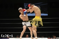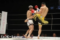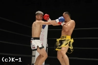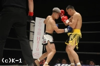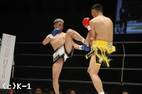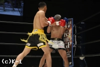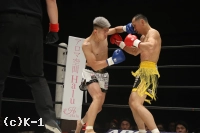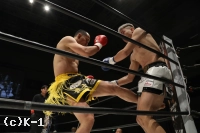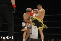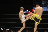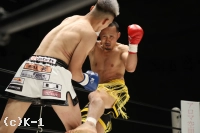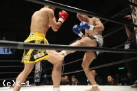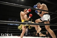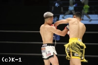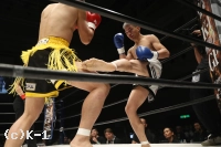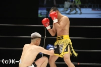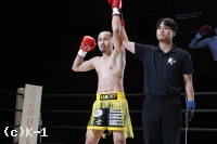 1R、ガードを固めて前に出る新美に、攻撃をパンチ、ローで上下に散らす大脇。新美を前蹴りで突き放し、入り際に打ちおろしの左オーバーハンドを叩き込む。下がりながら放つ大脇の前蹴りを意に介さず前進する新美。左アッパーにあわせた新美左ストレートが大脇のアゴを打ち抜き、大脇がぐにゃりと崩れ落ちるようにダウン。大脇は立ち上がるもレフェリーが試合をストップし、新美のKO勝利を宣告した。