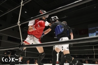 軽快にワンツーから右ミドルを伸ばす河村に、サウスポーの杉本が打ち終わりにワンツー。河村の入り際に杉本がワンツーを直撃させ、河村のアゴが跳ね上がる。2Rもワンツーで飛び込みパンチの距離へ入る両者。杉本はワンツーからバックハンドブロー、離れて胴回し回転蹴りと、トリッキーに河村を攻め立てる。河村は実直に前蹴りからワンツー、ミドル。両者手を止めないまま試合終了のゴングを向かえる。