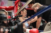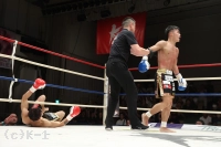 3R、内田の左ジャブに合わせて村田が右ロー。村田が右ローから左フックで飛び込むが、内田が右ロー、ミドルで懐に入れさせない。鼻血を出す村田はガードを高く構え右ローを連打。下がる内田のボディへ左三日月を突き刺し、内田からダウンを奪う。内田は逆転を狙い攻勢を強めるが、村田も応戦し終了のゴングを迎えた。