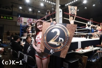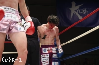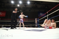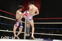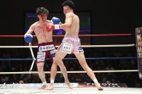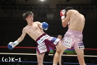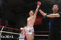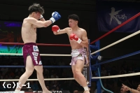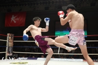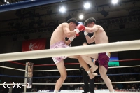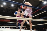 1R、大石が下がりながら左右カーフ。追う齋藤はスイッチから左右ロー、ワンツーで大石をロープに詰める。大石が左三日月、かかと落としと空手の蹴り技を連打。ワンツーで前に出た齋藤のアゴを左内回し蹴りで捉えダウンを奪う。