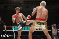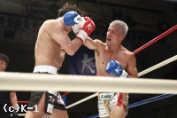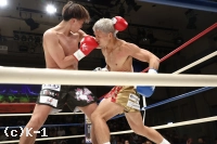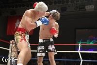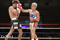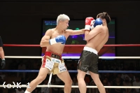 1R、永澤が飛び込んで左右ボディから左フック。下がる佐野をパンチで追い、コーナーを背負う佐野のアゴを右フックで跳ね上げる。佐野は温まってきたか、永澤の打ち終わりに左右ストレート。右フックをヒットし永澤の動きを止める。下がる永澤へボディから顔面へ返す左のコンビネーション。永澤も左フックから左ローで応戦する。