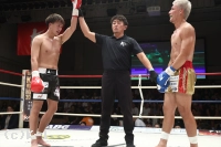 3R、右ストレートで前に出る佐野へ永澤が左ローを3発。永澤はワンツー連打から一歩引き佐野の左フックを空転させる。永澤が連打で圧力をかけ、打ち終わりに佐野が応戦。佐野の左フックで永澤が動きを止めるが、永澤も右フックをヒット。一進一退の攻防の中で試合終了を迎えた。