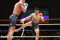 1R、杉若の鋭い左ジャブに小鉄が右ローを合わせる。杉若は右の蹴りをカーフ、ロー、ミドルと打ち分け。小鉄は杉若の入り際に右カーフを合わせる。杉若が踏み込み左ボディ。小鉄の右カーフに左フックを合わせ、右ストレートで小鉄をあわやダウンまで追い込む。