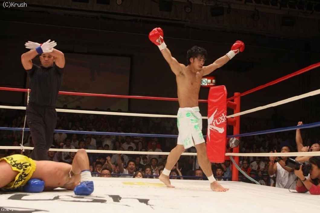 3R、功也がジャブと左ロー、左ハイキックから左ストレートにつなげる。パンチで前に出る翔に対して、功也はジャブと右ミドル。翔が左ストレートを打ち込むと。功也も左ストレートから右フック、的確に左ストレートと右ミドルをヒットさせる。翔の前進をジャブと右ミドルで止める。翔も必死に前に出ていくが、そこに功也がカウンターの左ハイキックを一閃。これで翔が前のめりにばったりと崩れ落ち、功也が戦慄のKO勝利で翔をマットに沈めた。