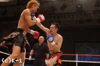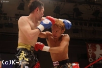 1R、前蹴りで距離を取る島野。渡辺は右ローを蹴って、細かいパンチで島野を下がらせる。ロープを背負った島野に左フックを打ち込む渡辺。島野も右ストレートを伸ばして左フックを返す。渡辺はこつこつとジャブ&ロー、島野は渡辺にコーナーを背負わせて左フックの相打ちでぐらつかせると一気にラッシュ、再び左フックを打ち込んでダウンを奪う。