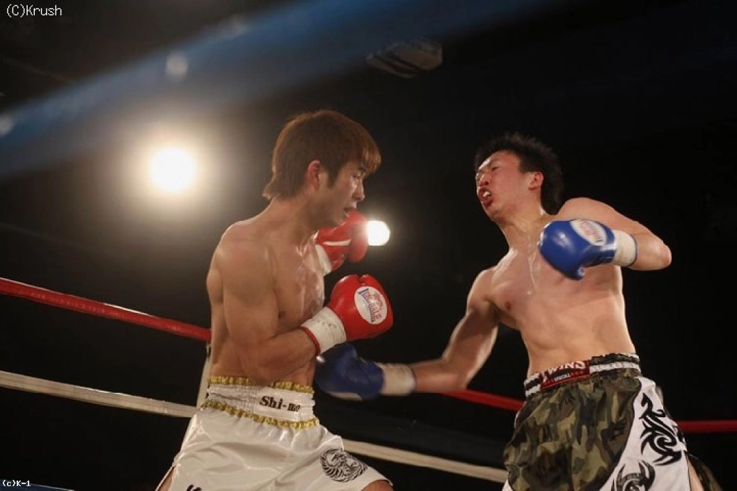 3R、ポイントでリードを許したMITSUTAKAは左右のフック、すぐに密着してShi-moに反撃のチャンスを与えない。この展開が最後まで続いて試合終了。合計3度のダウンを奪ったShi-moが判定勝利した。