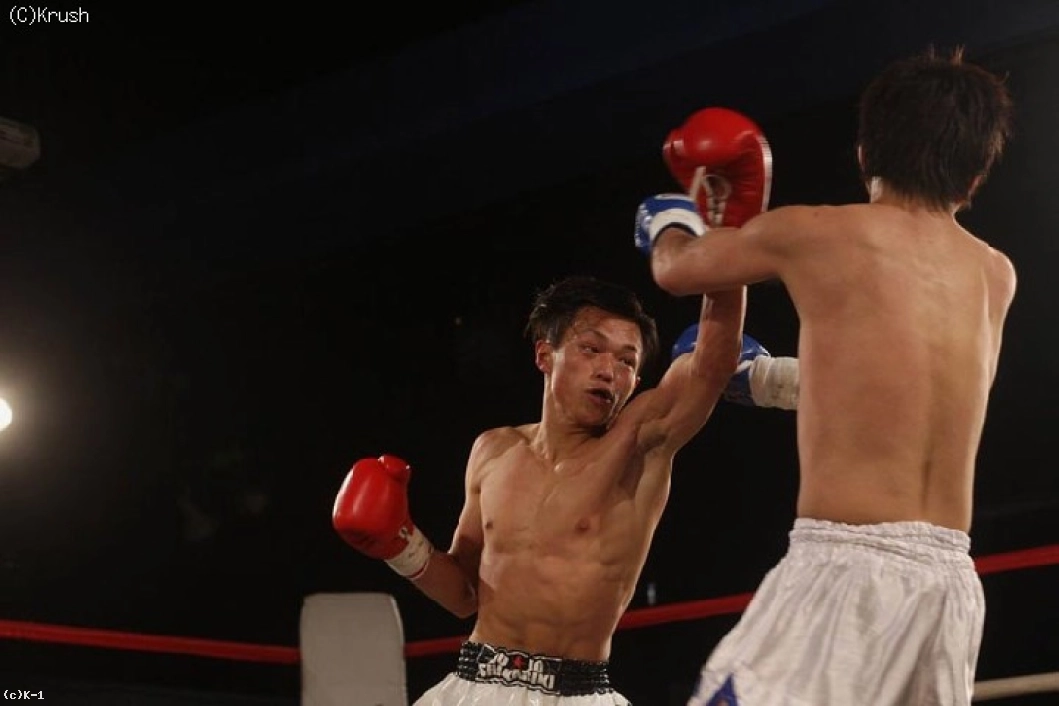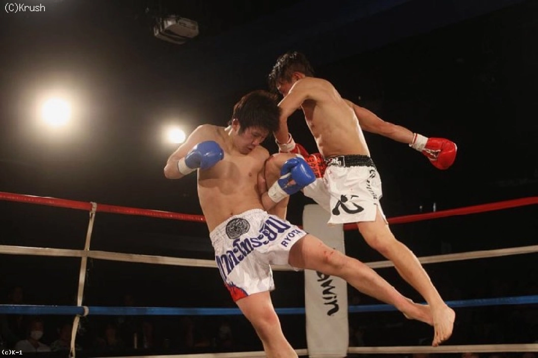 3R、隆聖はバックブローを打って、一気にパンチで前に出る。リョウタはそれを左のヒザ蹴りで迎え撃ち、隆聖は回り込みながら左フックを狙う。細かく動いてパンチをまとめる隆聖、単発ながら左ミドル・ヒザ蹴りを返すリョウタ。本戦判定は30-30×2、29-29と差がつかず、延長戦へ。