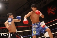 3R、変則的な顔面前蹴りを見せる功也。ムジタヒドもバックブローで応戦する。左ミドルを蹴り続けて前に出る功也。これで動きが止まるムジタヒドだが必死にローを蹴り返す。前蹴り・パンチでボディを攻め、最後はバックブローも見せた功也。KO勝ちこそ逃したものの、功也がフルマークの判定勝利を収めた。