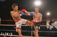 2R、斎藤の右ミドルとCAZの左ストレートが交錯。右フック、左ストレートとパンチの手数を増やして前に出ていくCAZ。斎藤はガードを上げて右のヒザ蹴りと右ストレートを返す。終盤、CAZがパンチからインロー、左ミドルを蹴る。