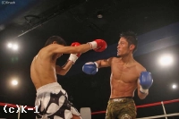 2R、濱田は距離を潰して左右のボディブローを連打、そこから右アッパーにつなげる。徹底したボディ攻めで前に出続ける濱田。伊藤もバックブローと右フック、ハイキックを返すが、濱田がプレッシャーをかけ続ける。このまま濱田ペースになるかと思われたが、再び伊藤のバックブローがヒット。これで伊藤が2度目のダウンを奪う。