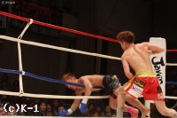 3R開始直後、寺戸が絶妙のタイミングで右ストレート。これでダウンを奪うと、今後は左フックから右飛びヒザ蹴りでダウンを追加。何とか立ち上がるKO-ICHIだったが、寺戸がラッシュしたところでセコンドがタオルを投入、試合がストップされた。