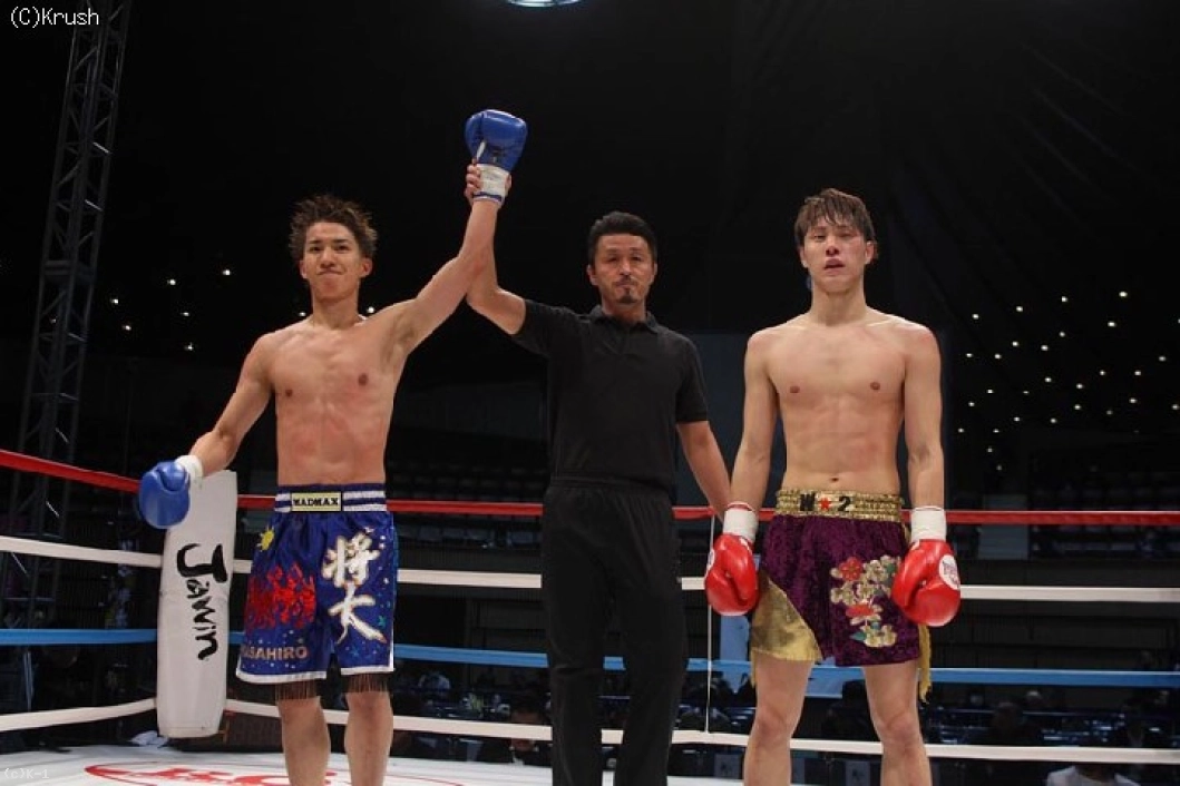 3R、逆転を狙うウエンツは右ストレート、右ヒザ蹴り、ハイキックやミドルキックと手数を増やして前進。将大もそれをディフェンスして右ストレートを当てていく。2Rにダウンを奪った将大がキャリアで上回るウエンツから勝利をもぎとった。