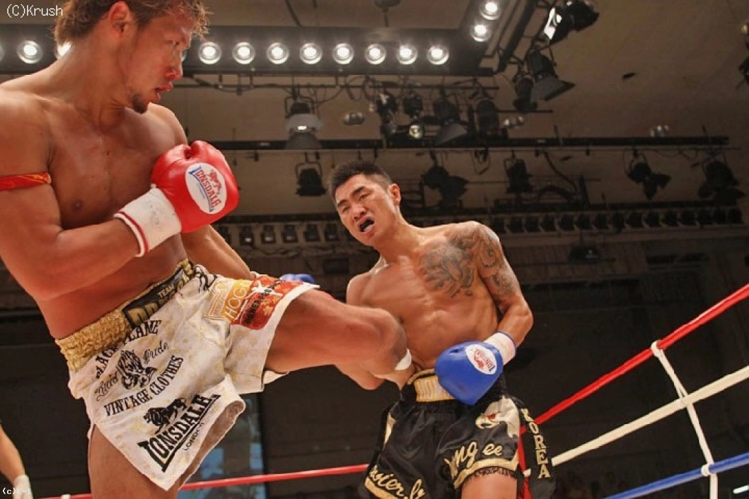 2R、パンチとロー、バックキックと手数を増やすバスター。卜部はガードを固めて右ローを蹴り、右ストレートのカウンターを狙う。お互いに足を止めてローを蹴り合う展開が続き、バスターの右ローに卜部が右ストレートを合わせる。