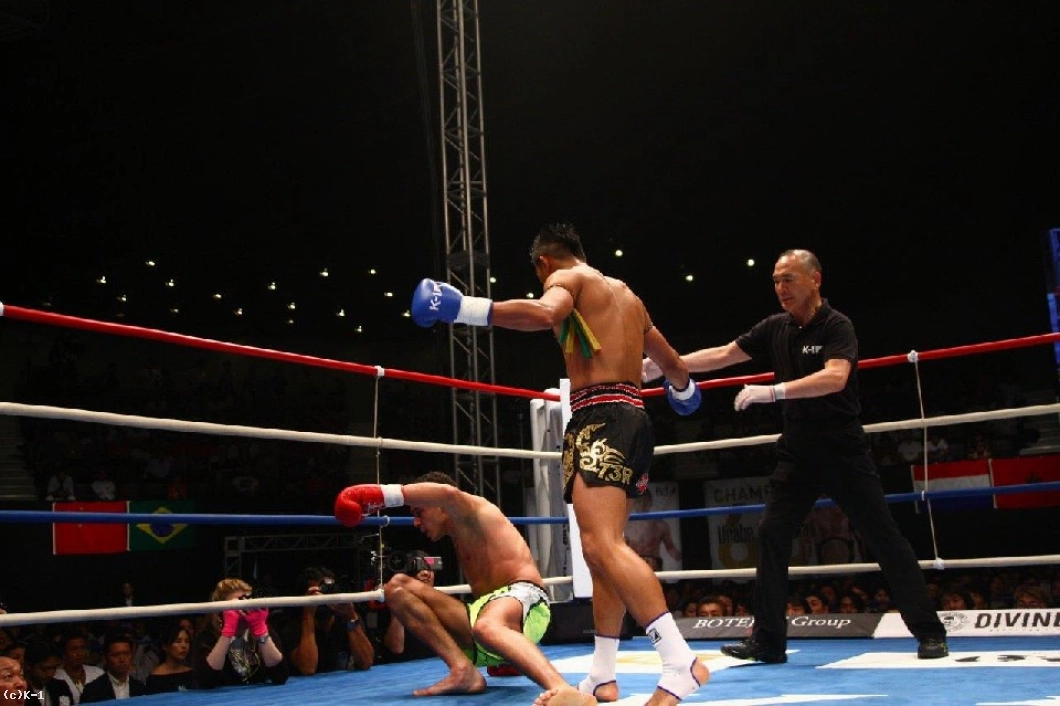 2R、右ローを連続で見舞ったゲーオはボディストレートを効かせ、そこからヒザ蹴りを打ち込み、これでダウンを奪取。