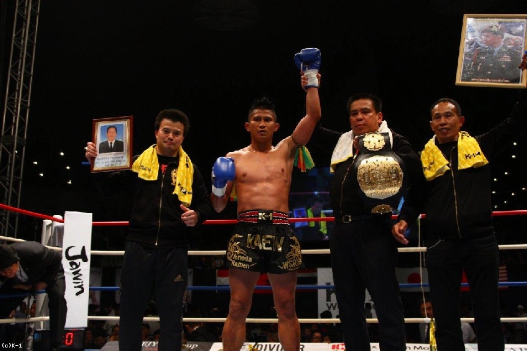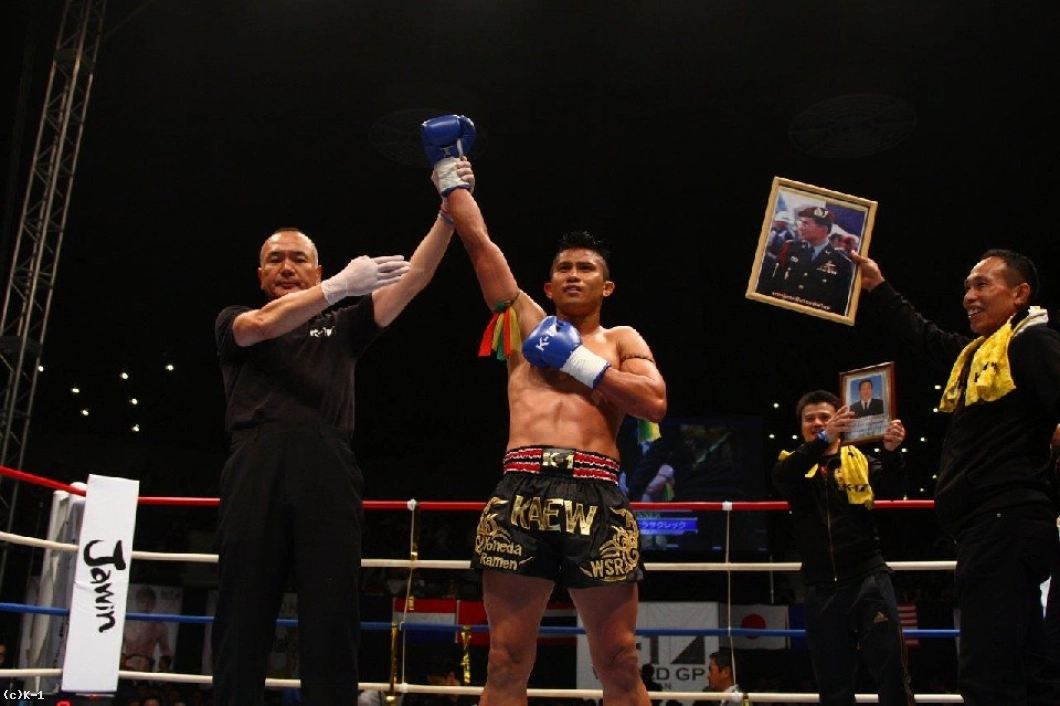しゃがみ込んだ状態でカウントアウトまで立てないかに思われたブライドだが、立ち上がって戦闘再開。しかし手負いのブライドをゲーオは逃さず、3度目のダウンもボディへのヒザで決め、優勝を果たした。