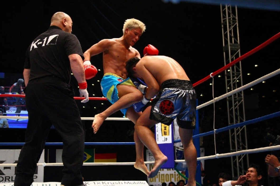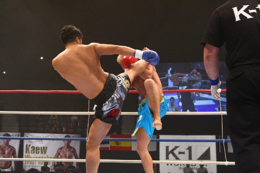 2R、攻勢となったK-Jeeは一時斐也に詰め寄られるも、右ヒザをK-Jeeのボディに打ち込んで効かせ、そこから再び右ヒザを突き刺しダウンを奪取。