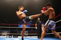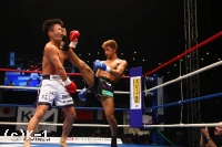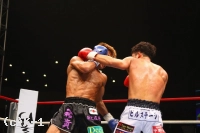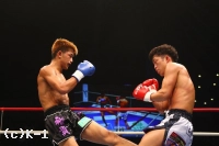2R、依然勢いのおさまらない朝久は、ヒザ・前蹴り・ミドルと前に出る。しかしパンチの交換では大滝に分があり、朝久はクリンチ、あるいは蹴りの間合いに戻して対応する。だが朝久は蹴りを散らして大滝の意識を分散することで左フックをクリーンヒット。大滝も左フックを強振して反撃するが朝久にかわされ当たらない。