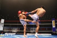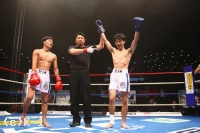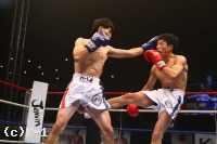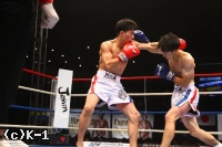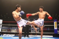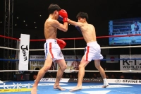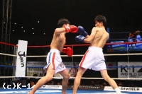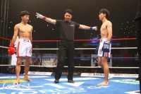 3R、プロ5戦5勝の戦績を持つ横山を西京はしかし頭を振ってパンチをかわし、逆に左フック、右ストレートと当てていく。左ハイでも横山をとらえて西京は試合を終了。