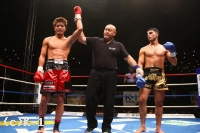 3R、セディッキはスピードを落とさず後ろ回し蹴り、ミドルと放ち、さらにフック。左右田はヒザ蹴りを狙って前に出るが、セディッキを掴んでしまいレフェリーから注意を受ける。前に出る左右田だが、セディッキも体をクルリと入れ替え、左右田のヒザを決めさせない。だが終盤、左右田はボディへのヒザから顔にフックとストレートを返してヒットを上げる。
