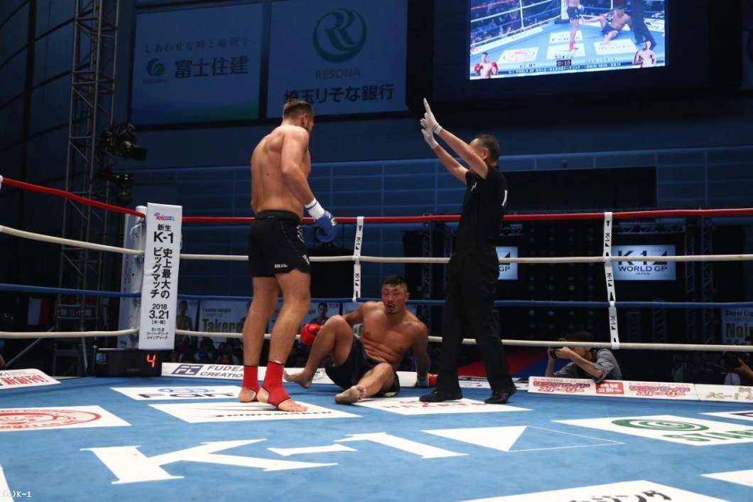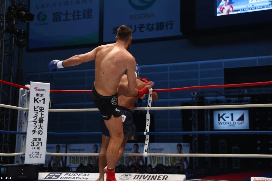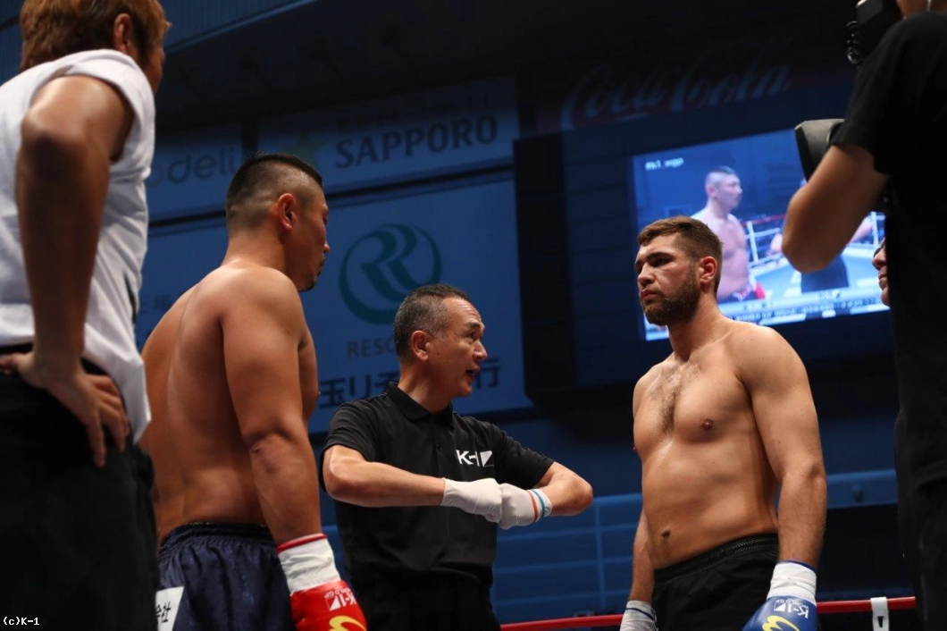 「(試合を振り返って?)超ダサかったですね。ローを効かせていただけに、悔やまれるというか。(対戦相手の印象は?)ミドルを蹴ってくるのはわかってたんですけど、もらっちゃって。練習不足ですね。(今後の目標は?)会見では日本のヘビー級が輝いていないと言ったんですけど、こんな結果になってしまって。また、挽回できるようにがんばらないといけないですね」