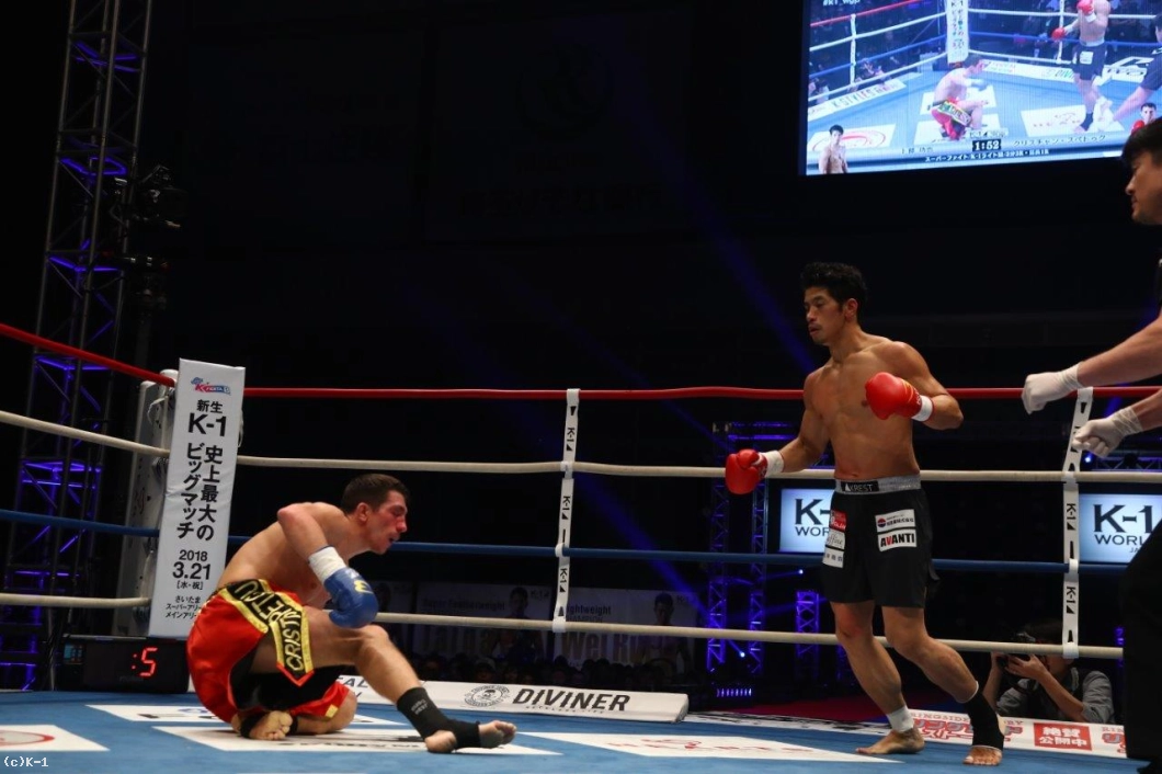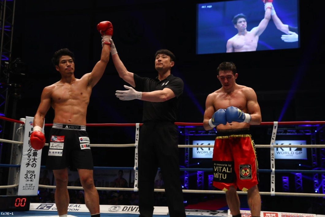 「(試合を振り返って?)9カ月ぶりのK-1の試合で、本来の自分を見せるのを目標としました。そういう試合ができたと思います。(対戦相手の印象は?)気持ちの強い選手でしたね。前に出てきて、気持ちのいい選手だなと思いました。(今後の目標は?)この階級の頂点にいるウェイ・ルイ選手に挑戦したいなと思います。(左の攻撃が冴えていたが?)前回のKrushの試合はパンチが流れる部分もあったので、打ち方もなるべく早く引いて戦いました。あまり押し込みすぎず。打ち終わりを狙ってくると思ったので、スピードで翻弄しようと思ってました。ウェイ・ルイ選手には僕から挑戦させてほしいという謙虚な気持ちでいます」