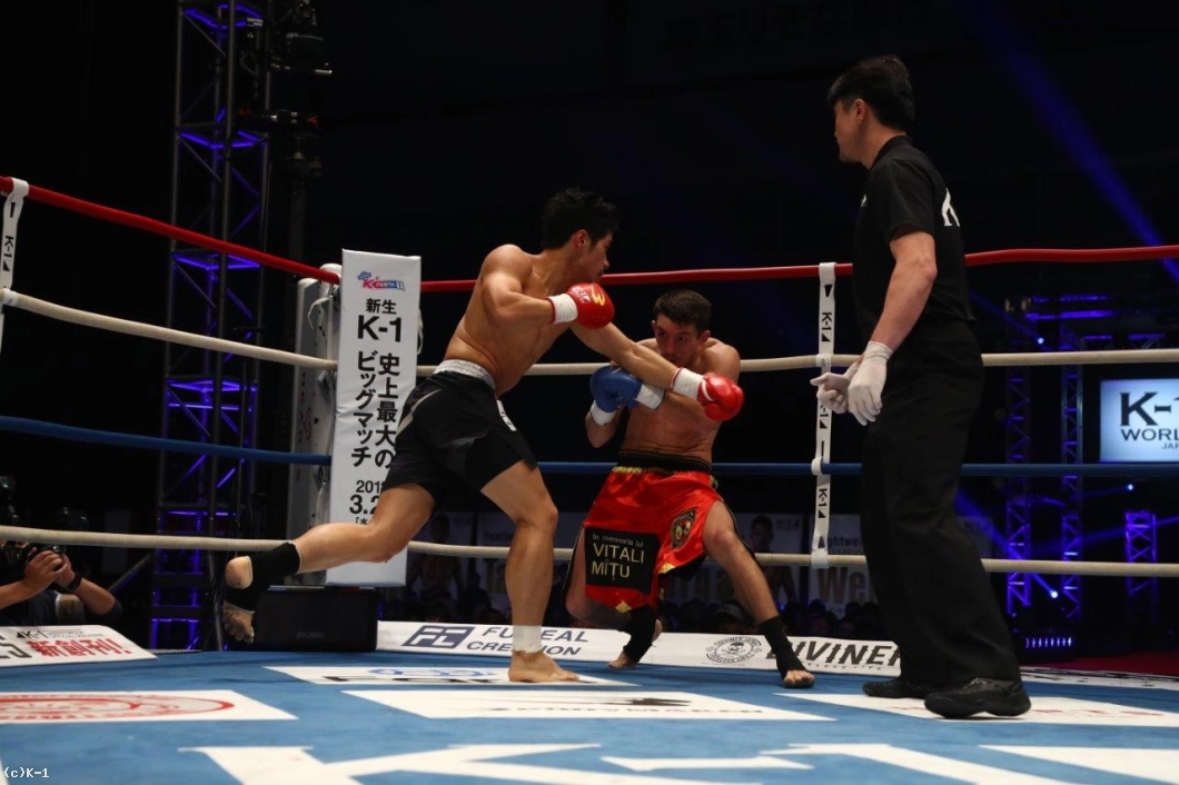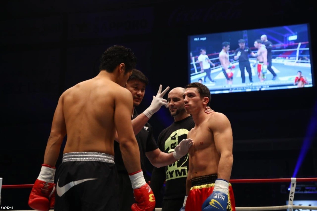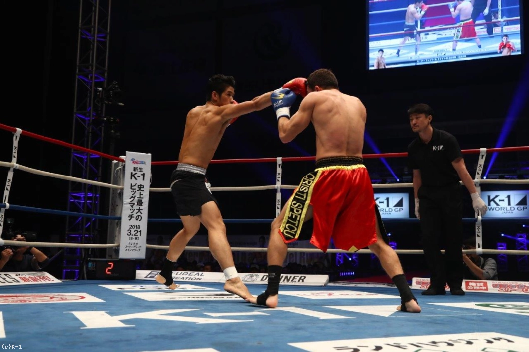 3R、功也はジャブを間断なく突き、スペトゥクの動きが見えているかのように隙を見て左ストレートを突き刺す。スペトゥクは焦りからか首を掴んでの攻撃を見せてしまいレフェリーから注意を受け、パンチも振りが大きくなって功也にかわされる。功也は跳びヒザを見舞って顔面にヒット。スペトゥクの顔から出血を呼び、さらに顔へのヒザ蹴りを打ち込む。パンチでのラッシュ、ハイキックとKOを狙った功也だが、ダウンには至らず終了のゴングとなる。