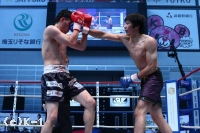 2R、前蹴り・ローを繰り出す前田だが、原はこのラウンドもジャブ・ストレート・左フックとパンチが止まらない。ラウンド中盤に出ていく前田だが、原はバックブロー・後ろ回し蹴りと回転技を繰り出し、連続のジャブで前田を出させない。そして左フックでとらえてテンプルをとらえ前田をダウンさせる。立ち上がった前田に原は左アッパーとストレートを繋いでラッシュ。コーナーに詰めて連打を集めるも、ここは前田が前蹴りで距離を作って乗り切る。