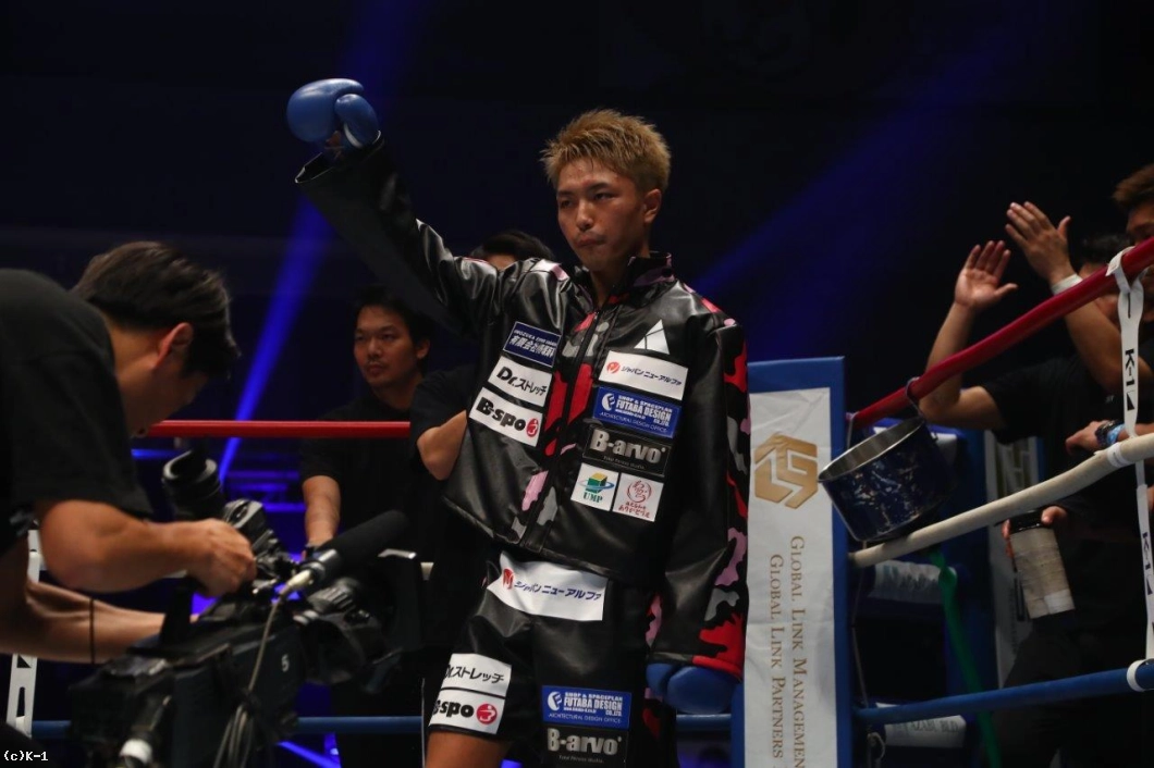 (K-1参戦時のターゲットだった?)やっぱり、K-1で、自分が思うに一番目立ってるなっていう。その目立ってる選手を食っちゃえばおいしいと思うんで、ぜひやりたいです。(9月と言われたら?)やりますね。今日の決勝戦も、自分は延長行ってもいいと思ってたんで。すごくボロボロだったんですけど、最後は気持ちの強い方が勝つと思ってたんで。気持ちでは負けるつもりはなかったです。