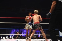「1回戦でバッティングをよくもらってしまって、ダメージがけっこうあって左目も半分見えない状態だったんですけど、その状態で集中力も切れてた状態で彼のパンチは魔裟斗さんも言うように鉄球みたいな感じで一発もらって意識が飛んじゃったんで、それ以外は覚えてないんですけど。やっぱり最強の男は強かったですね。実際に対峙してみて、そう感じました。