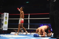 立ち上がった玖村に武居は後ろ回し蹴りから入り、ロープの間から玖村の頭が出てしまうほどの勢いでラッシュ。持ち応えんとした玖村だが、武居は逃さずズバリとフックを決め、1回戦に続く初回KOで玖村将史の待つ決勝へと上がった。