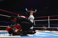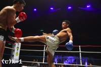 武居はさらに右アッパーから左ストレート。さらにワンツーで攻めると、玖村もそこへストレートをカウンターで合わせる。玖村はそこから右ミドルを入れ、やや流れを引き寄せたかに思えたが、武居は右アッパーから左ストレートをずばりと打ち込みダウンを奪取。さらにラウンド最後もラッシュからバックブローを決め初回を終える。