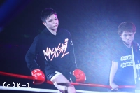 (決勝のフィニッシュになった倒れ際の蹴りについて)意識して練習はしてないんですけど、試合では一瞬の隙というところでは詰めないといけないと思っていて、そういう怖い部分で攻めていこうかなと思ってました。(セコンドからハイキックの指示も出ていたが?)そんなに聞こえてませんでしたが、正直蹴りは狙っていて、蹴っていこうという意識はありました。(決勝の1Rが終わった時に会長からは?)焦りすぎだって言われました。正直、全試合1RKOを目標にしてたので、1Rに倒そう倒そうとしすぎて動きが固くて、怒られました。それでちょっと落ち着きました。(玖村兄弟が「倒せない相手ではない」というニュアンスのことを言っていたが?)ああ……ハイ(笑)。二人とも、自分を含めて若いので、まだまだ成長できると思うので、いつでも待ってますという感じです。
