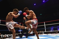 3R、両者ハグを交わしてから戦いに臨む。大沢は里見を前蹴りで押さえて右ローキック。里見は鋭く回ってバックブローを放つが、大沢は当てさせない。大沢は里見をプッシングで下がらせ、ボディフック&ローと攻めるが、里見もカウンターのショートフックで反撃。ここで大沢のローキックがローブローとなってしまう。中断の後で再開。前進ベースの大沢はボディ連打で里見の馬力と前進を削り、優勢な印象で試合を終える。判定は30-29、30-29、30-29の3-0で大沢。前に出る気迫のファイトで里見の下剋上を退けた。