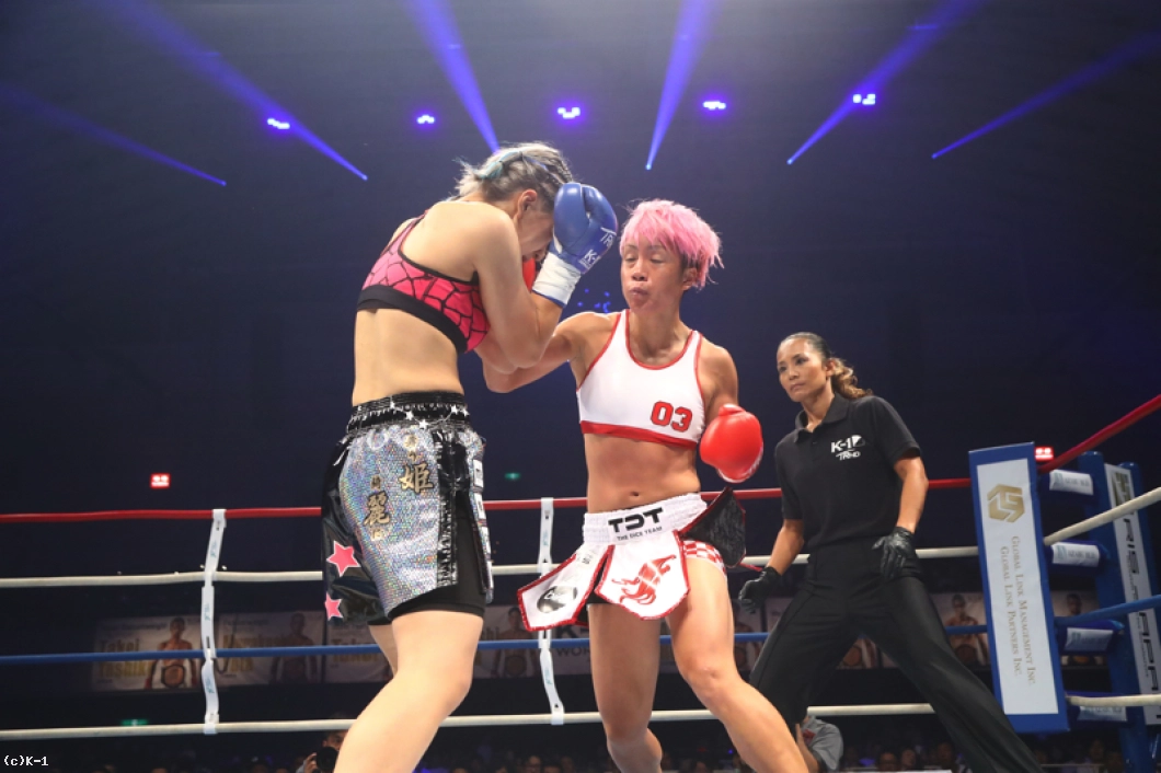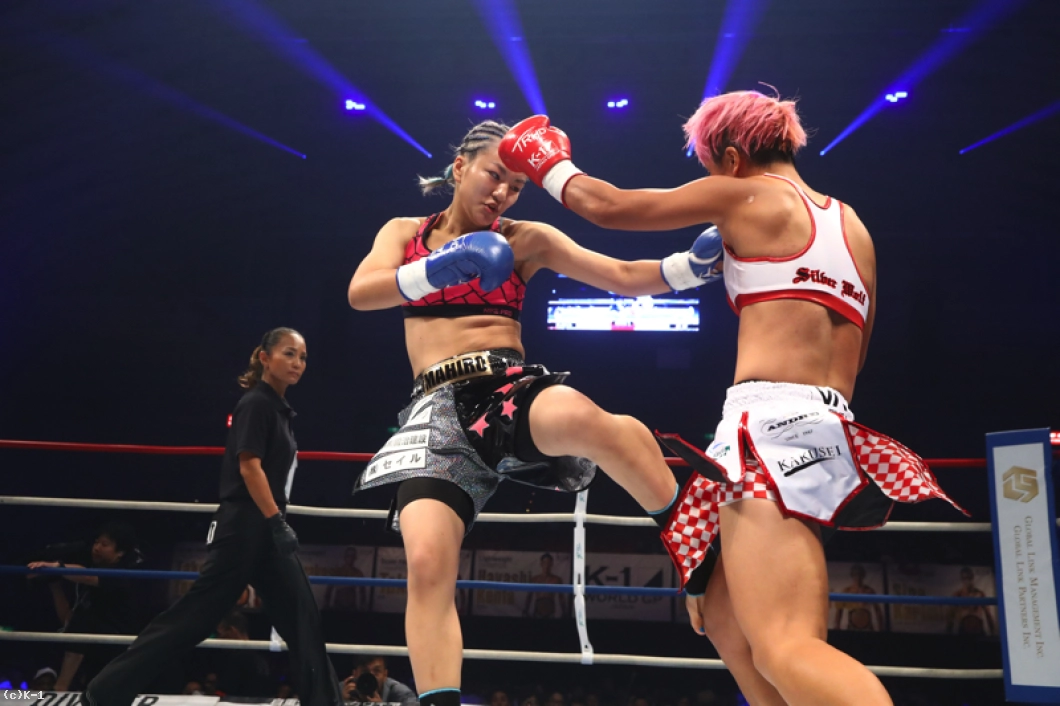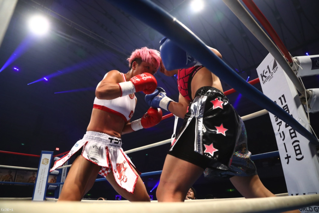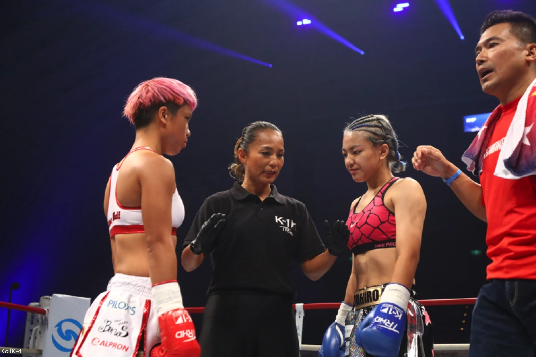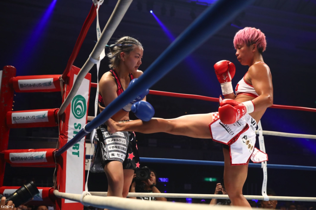 (今後の目標と、ファンにメッセージを)今日は本当にたくさんの応援ありがとうございました。初めて大阪で試合して、気持ちよく試合できました。今後の目標は、大きい目標としてはK-1の女子世界トーナメントを開催して、自分が優勝するということなんですけど、確実に次の試合に向けて、確実に自分が強い姿を見せられるようにもう一回考え直して、次に向かいたいと思います」