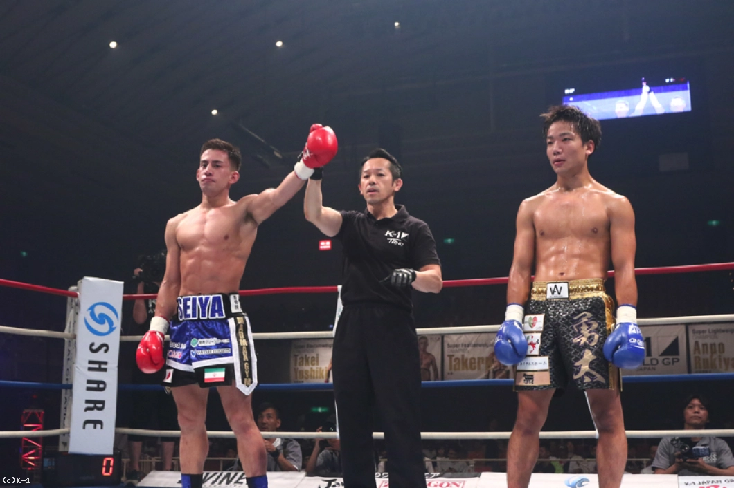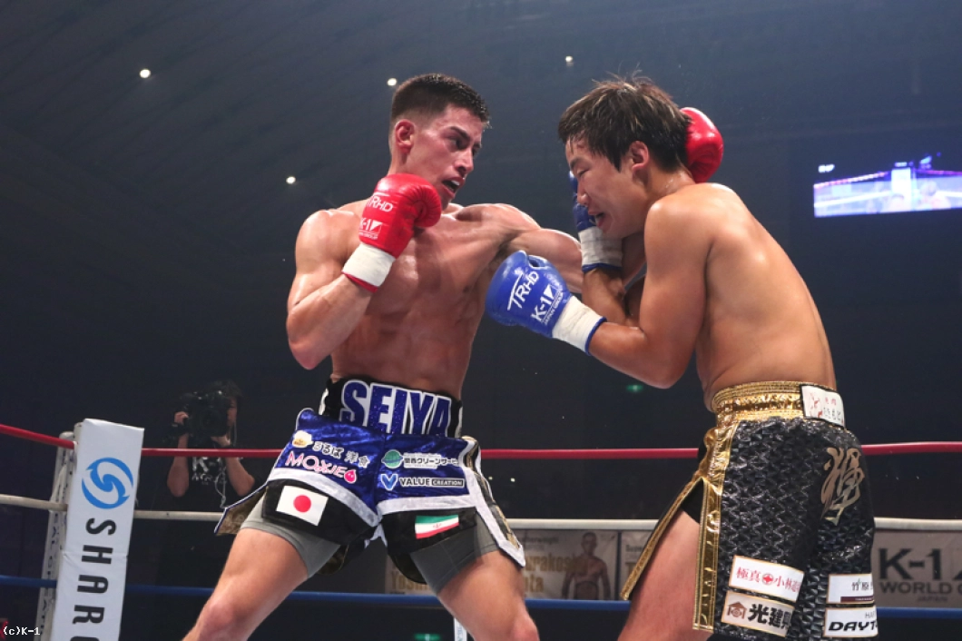 最終R、やはり前に来る鈴輝にSEIYAは連打をまとめる。それでも鈴輝が出てくるとSEIYAはプッシングしてその勢いと前進を押さえ、右クロスをクリーンヒット。タフな鈴輝だがさすがに効いたかやや動きが緩慢になる。SEIYAはパンチからの右ローも継続して繰り出しヒット。鈴輝はそれでも圧力を緩めず左フックを当てるが、SEIYAはブロッキングとプッシングを交えて打ち返し試合を終える。判定は30-28、30-28、30-28の3-0でSEIYA。タフな鈴輝を下し、大阪対決を制した。