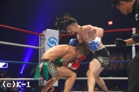 (ちょっとでも危ないなと思った場面は?)パンチをすごくリズミカルに出してくるので、これをもらったらペースが向こうに傾いてしまうと思って、いつも以上に慎重にはなってたかもしれないです。今日は全部が脅威に感じました。(今後の目標と、ファンにメッセージを)今後は野杁選手だったりピケオー選手だったり、K-1にはまだトップの選手がいるので、そのメンバーを倒せるように仕上げるというのがまず何よりも最重要の課題だと思うので、そうなれるようにオールラウンダーに成長できたらなと思います」